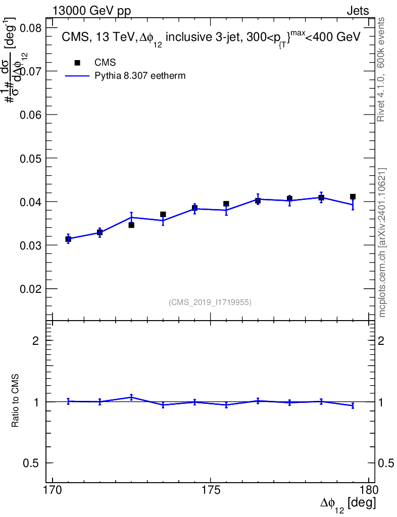 Lines: data, pythia8 8.307 eetherm |