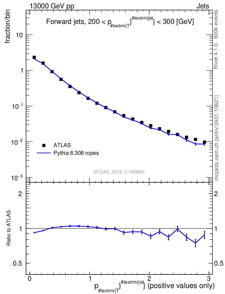 Lines: data, pythia8 8.308 ropes |