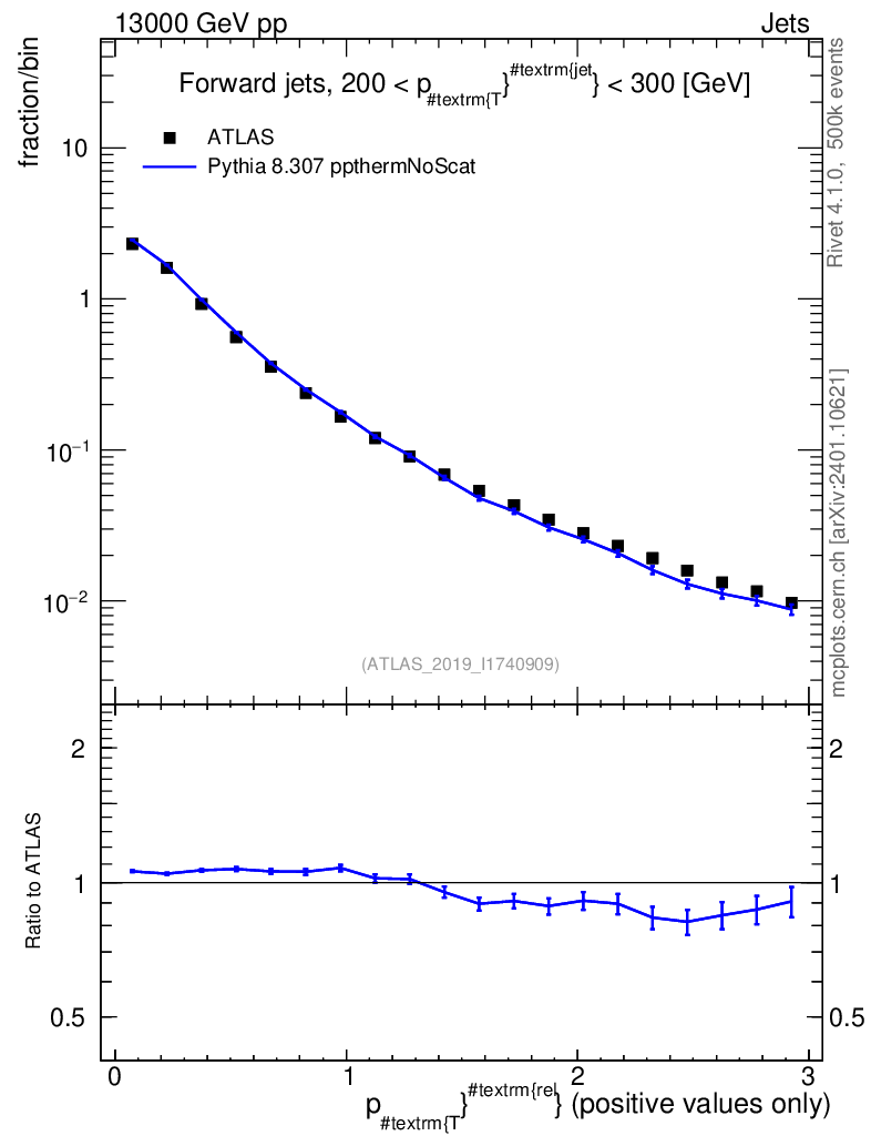 Lines: data, pythia8 8.307 ppthermNoScat |