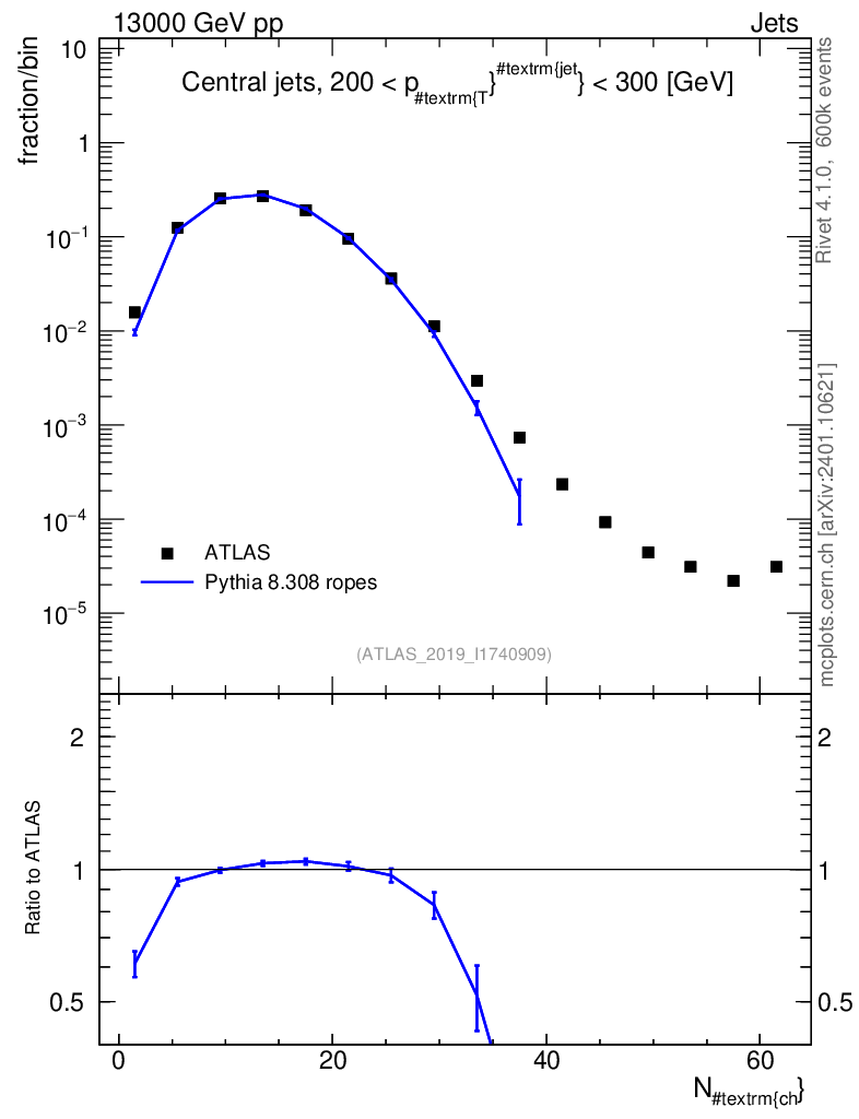 Lines: data, pythia8 8.308 ropes |