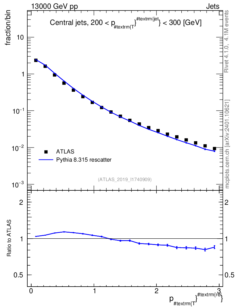 Lines: data, pythia8 8.315 rescatter |