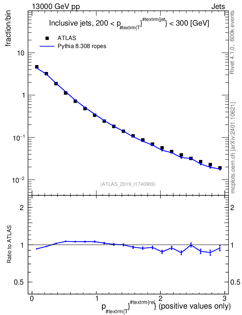 Lines: data, pythia8 8.308 ropes |