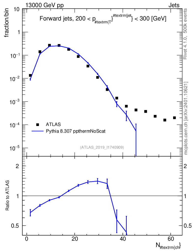 Lines: data, pythia8 8.307 ppthermNoScat |