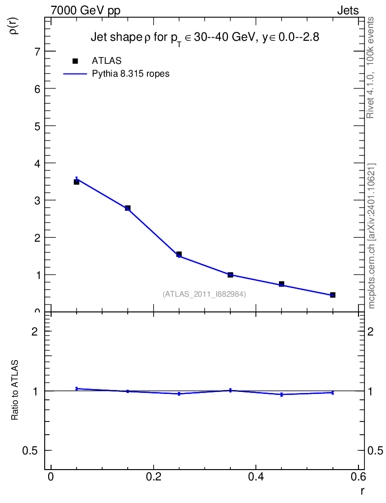 Lines: data, pythia8 8.315 ropes |