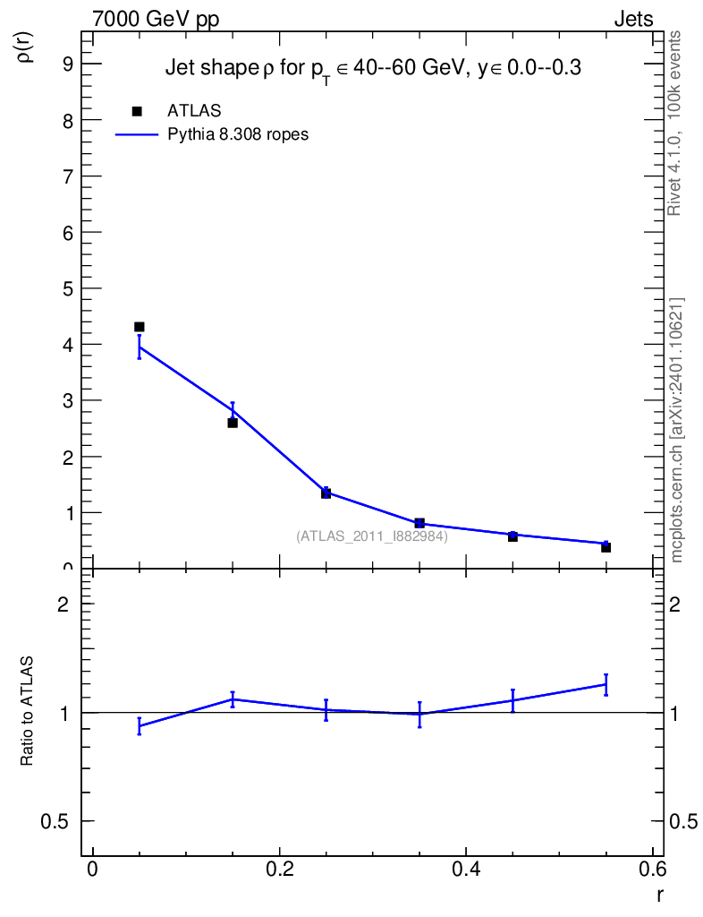 Lines: data, pythia8 8.308 ropes |