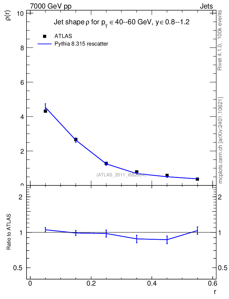 Lines: data, pythia8 8.315 rescatter |
