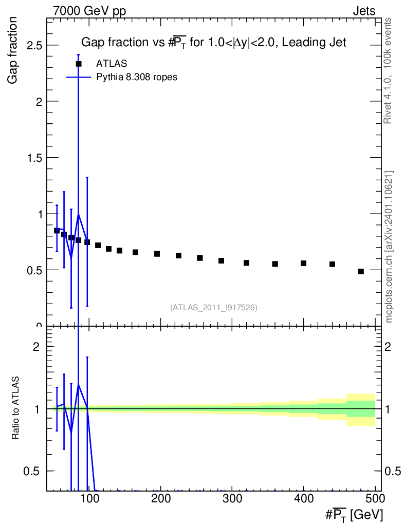 Lines: data, pythia8 8.308 ropes |