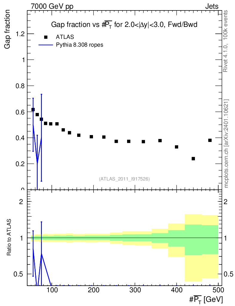 Lines: data, pythia8 8.308 ropes |