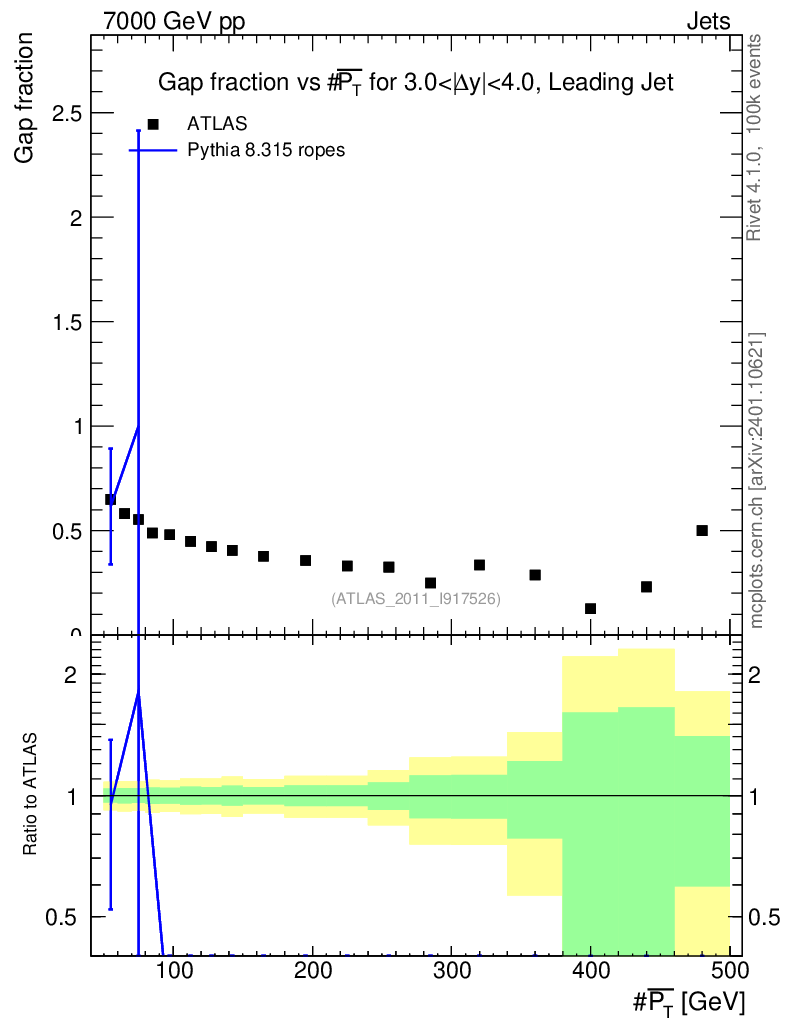 Lines: data, pythia8 8.315 ropes |