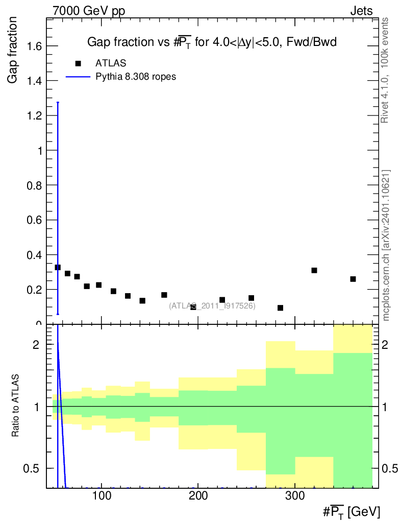 Lines: data, pythia8 8.308 ropes |