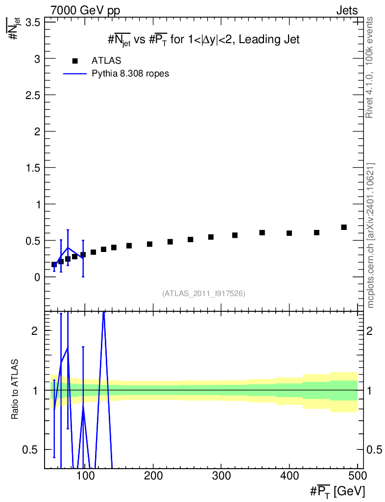 Lines: data, pythia8 8.308 ropes |