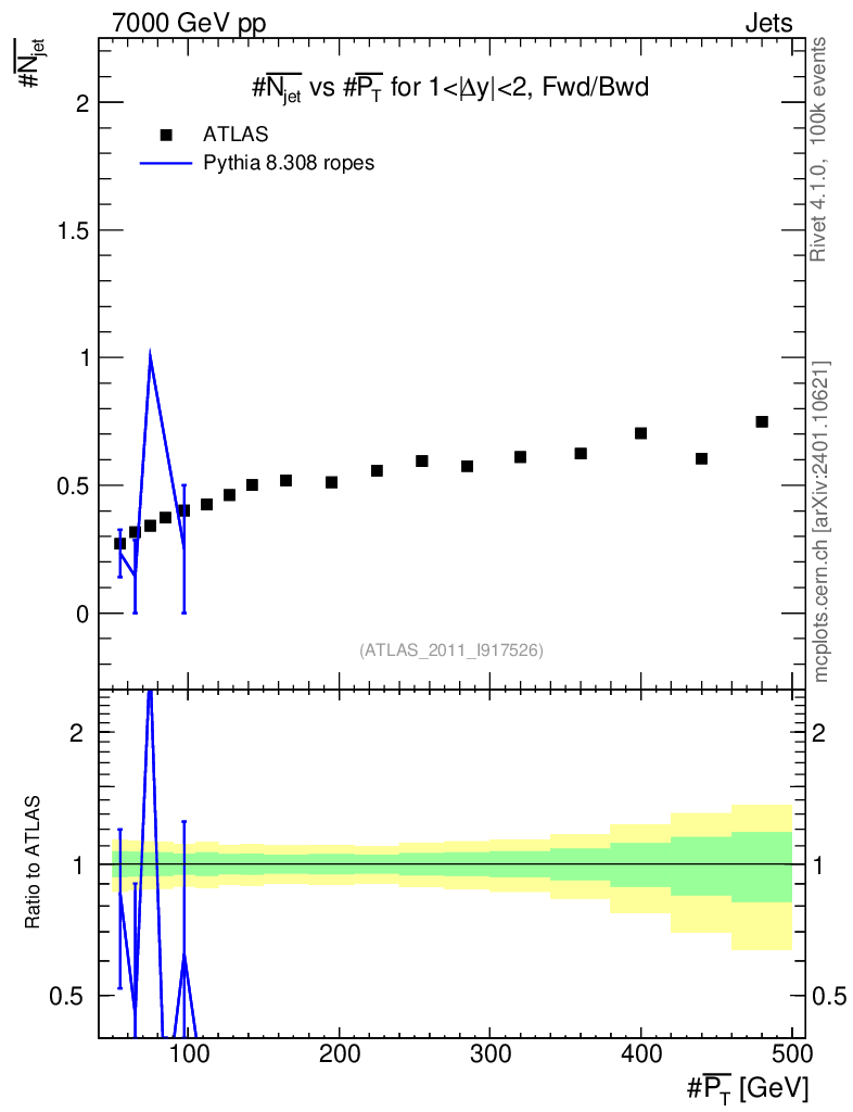 Lines: data, pythia8 8.308 ropes |