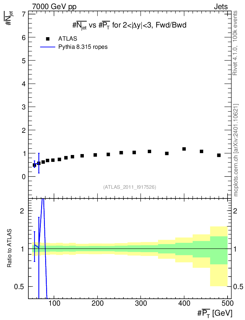Lines: data, pythia8 8.315 ropes |