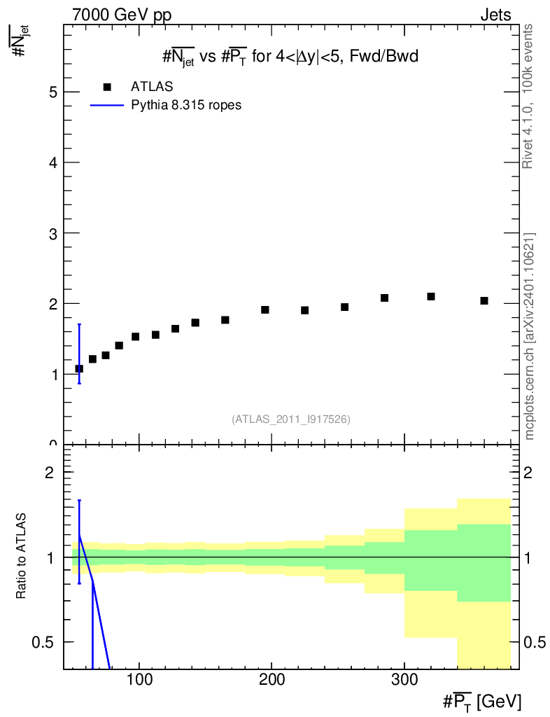 Lines: data, pythia8 8.315 ropes |