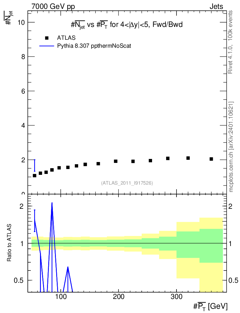 Lines: data, pythia8 8.307 ppthermNoScat |