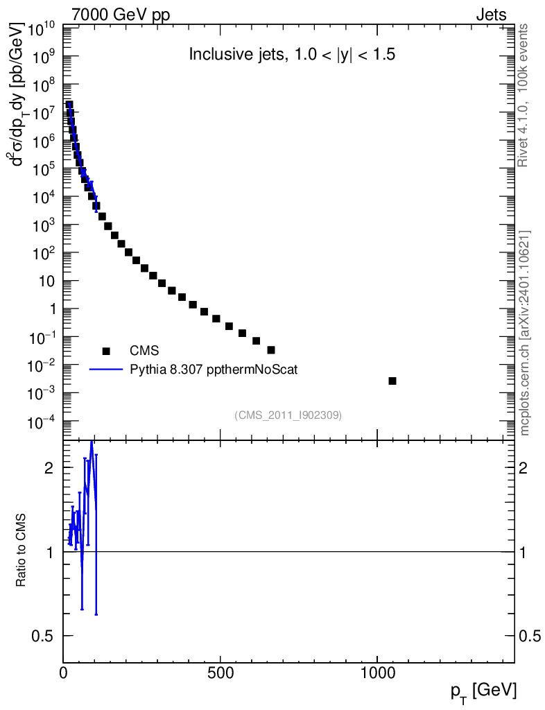 Lines: data, pythia8 8.307 ppthermNoScat |