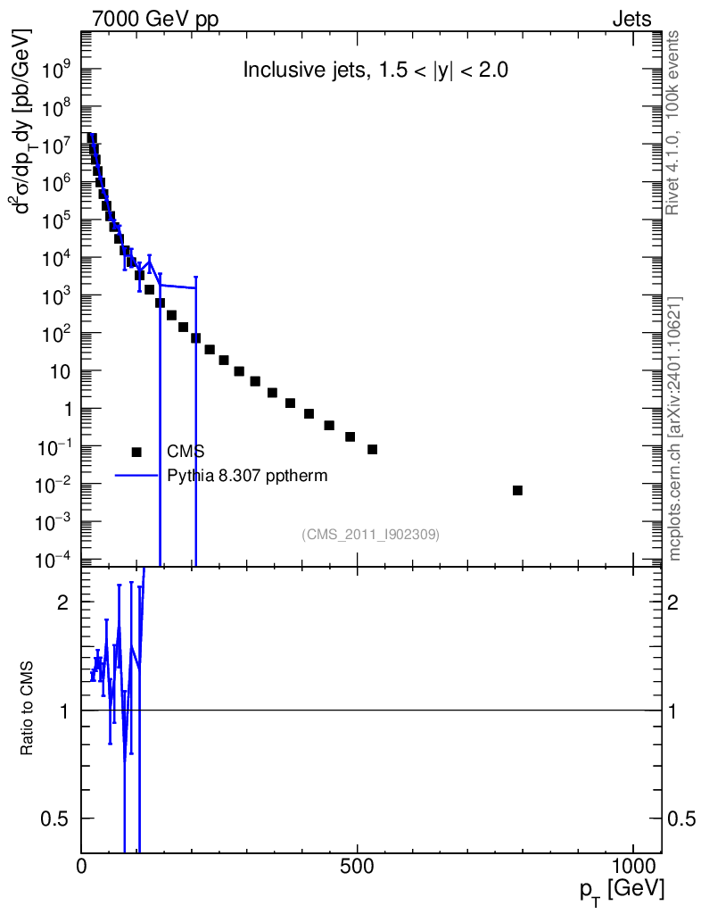 Lines: data, pythia8 8.307 pptherm |