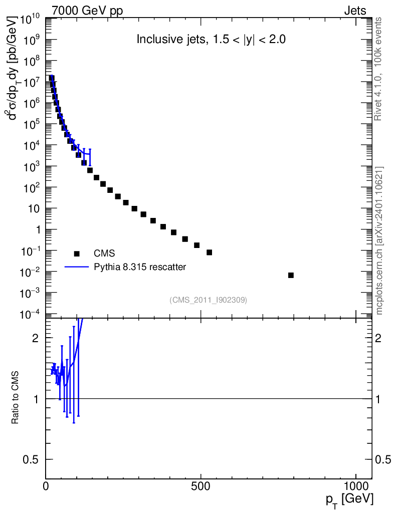 Lines: data, pythia8 8.315 rescatter |
