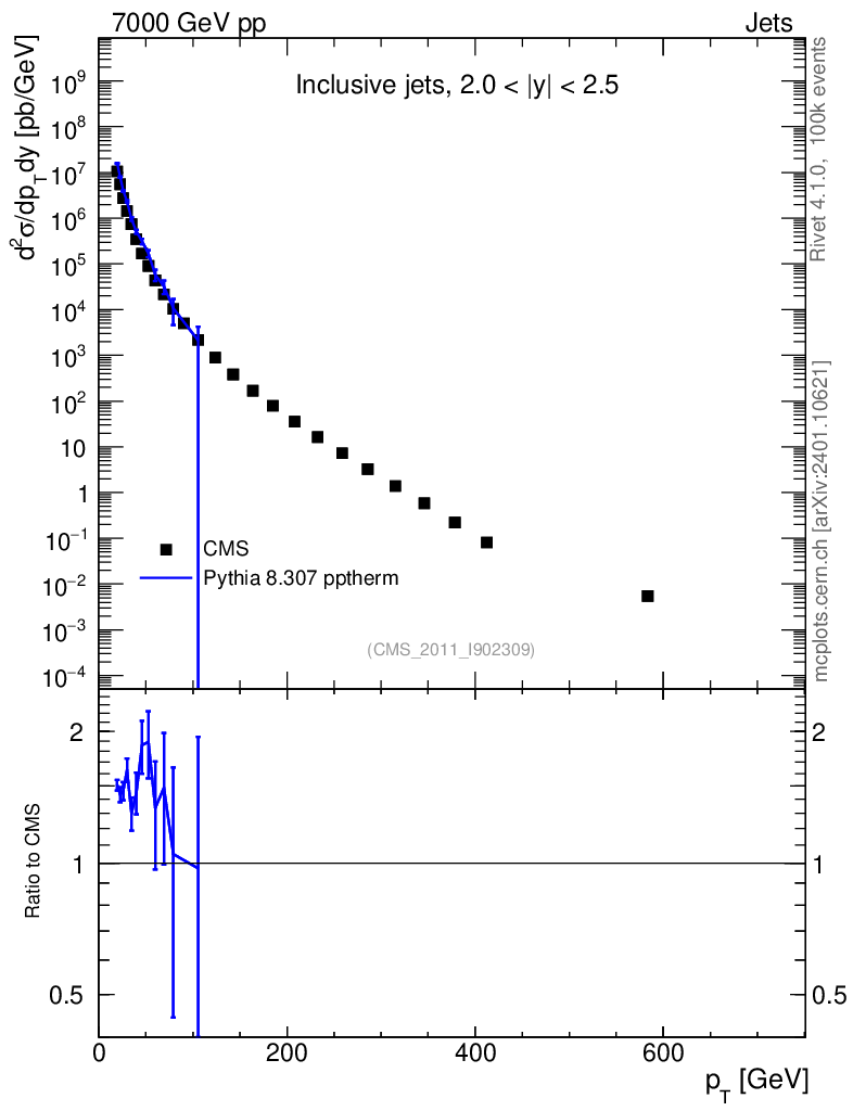 Lines: data, pythia8 8.307 pptherm |