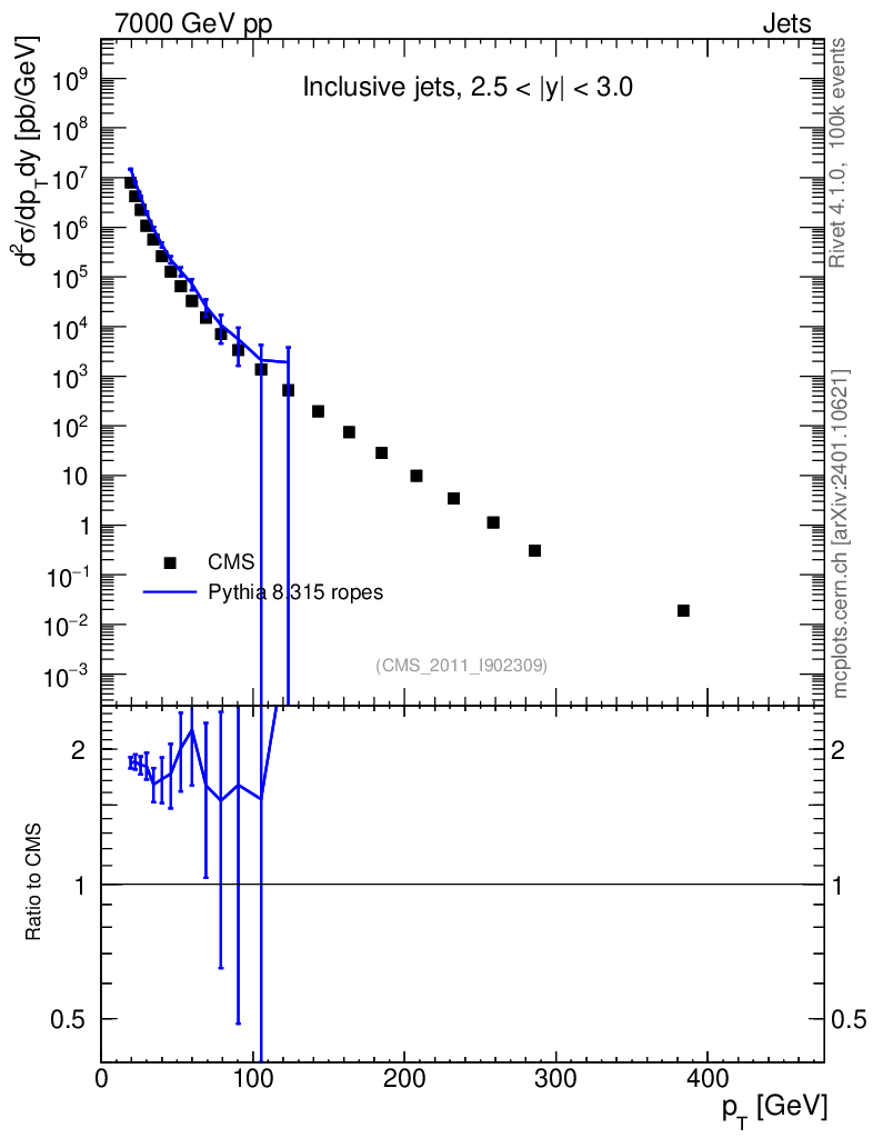 Lines: data, pythia8 8.315 ropes |