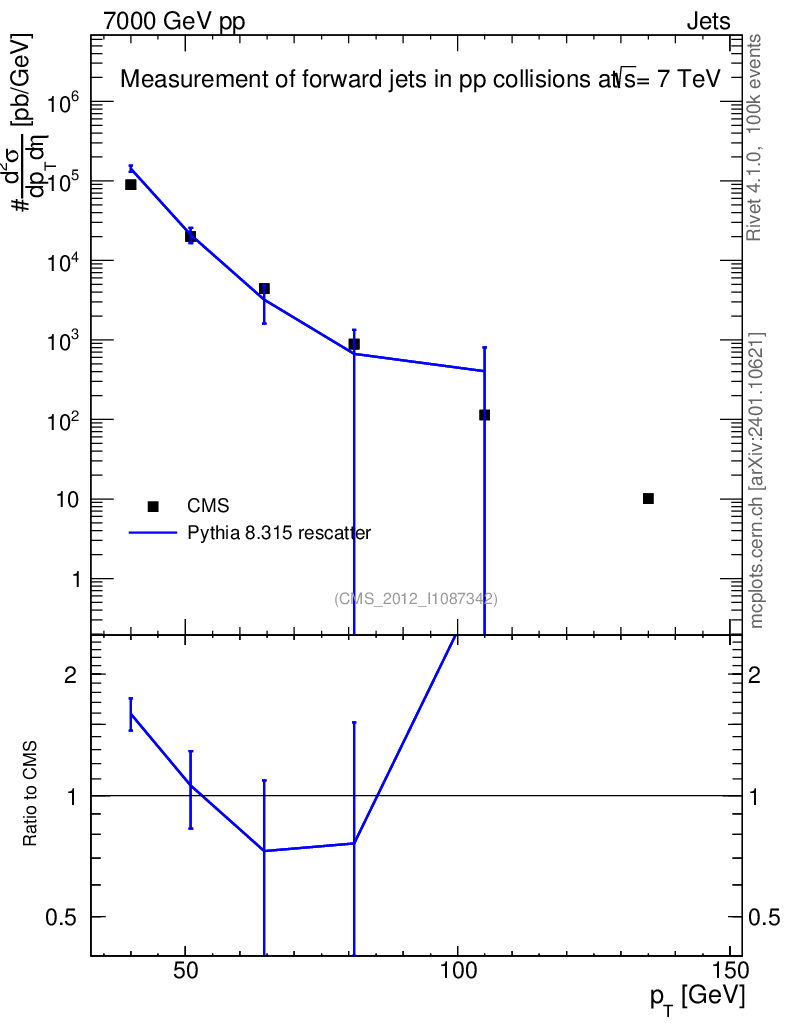 Lines: data, pythia8 8.315 rescatter |
