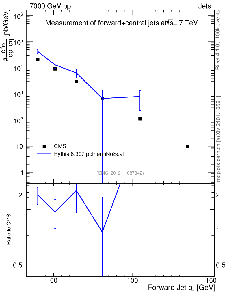 Lines: data, pythia8 8.307 ppthermNoScat |