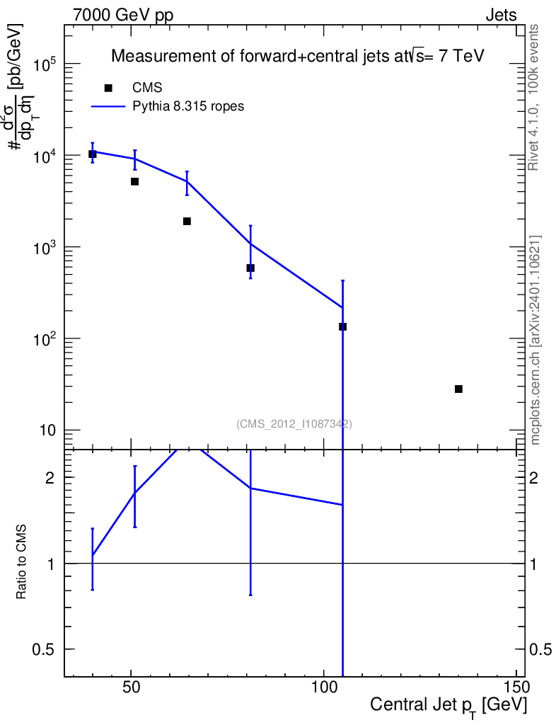 Lines: data, pythia8 8.315 ropes |