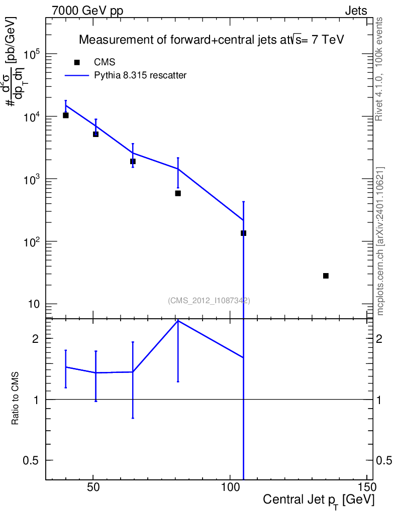 Lines: data, pythia8 8.315 rescatter |
