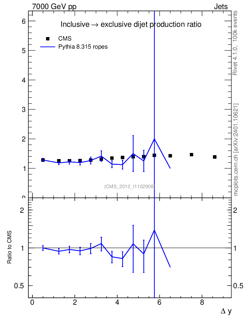 Lines: data, pythia8 8.315 ropes |