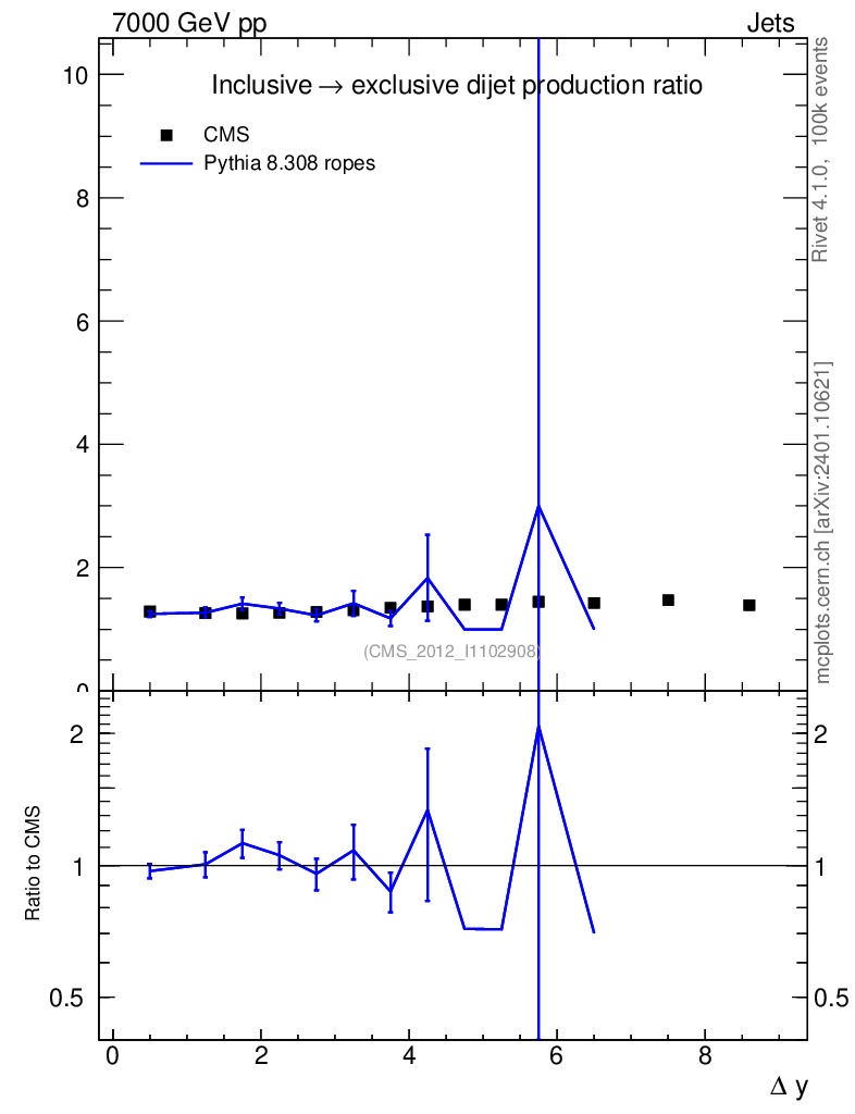 Lines: data, pythia8 8.308 ropes |