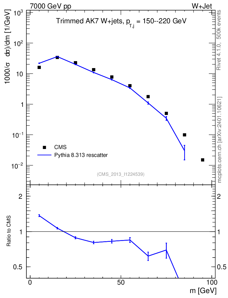 Lines: data, pythia8 8.313 rescatter |