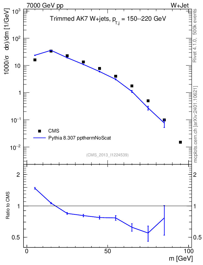 Lines: data, pythia8 8.307 ppthermNoScat |