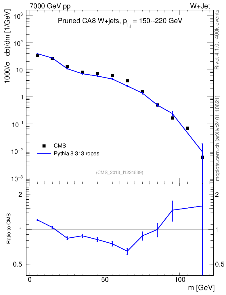 Lines: data, pythia8 8.313 ropes |