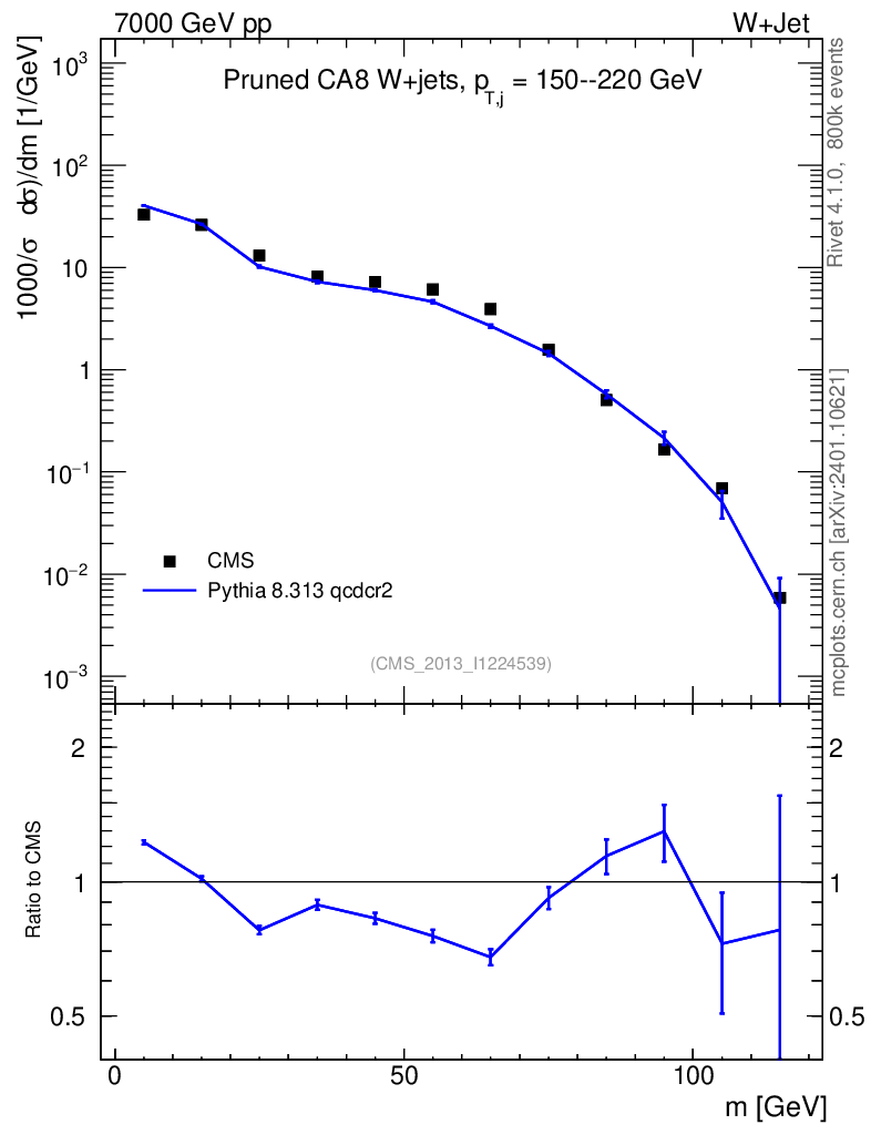 Lines: data, pythia8 8.313 qcdcr2 |