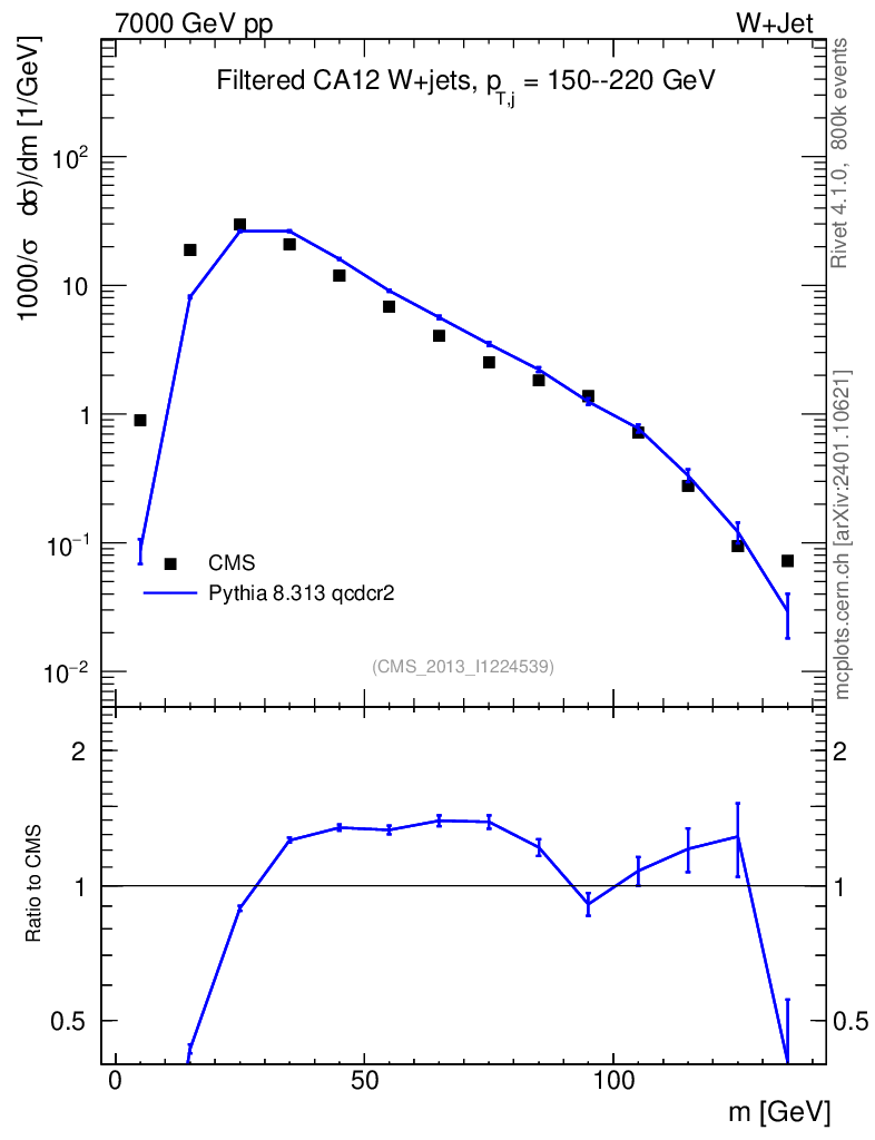 Lines: data, pythia8 8.313 qcdcr2 |