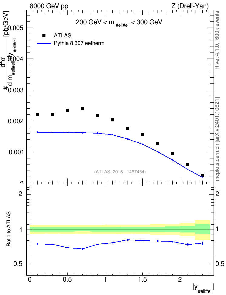 Lines: data, pythia8 8.307 eetherm |