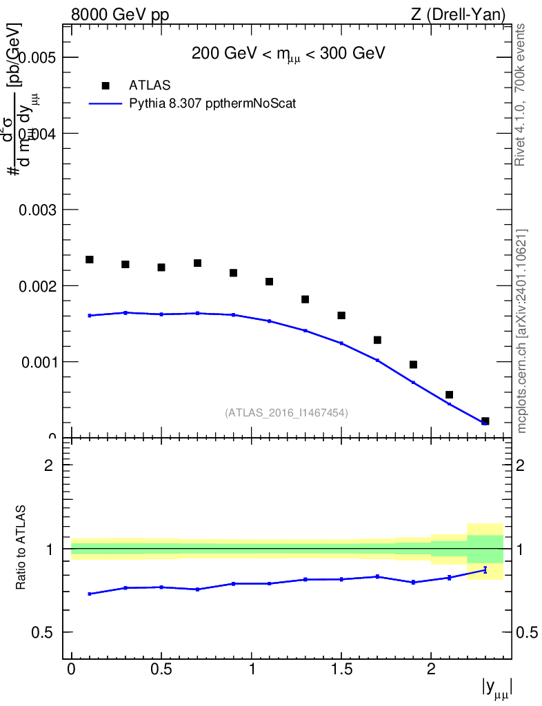 Lines: data, pythia8 8.307 ppthermNoScat |