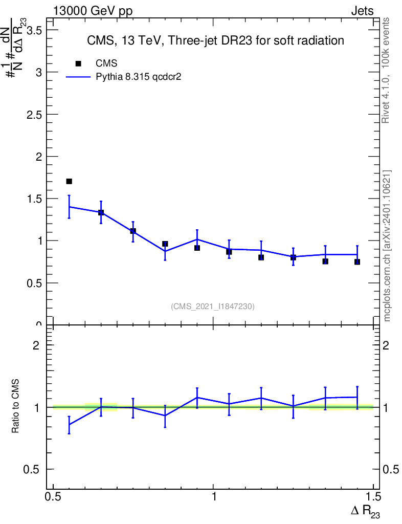 Lines: data, pythia8 8.315 qcdcr2 |
