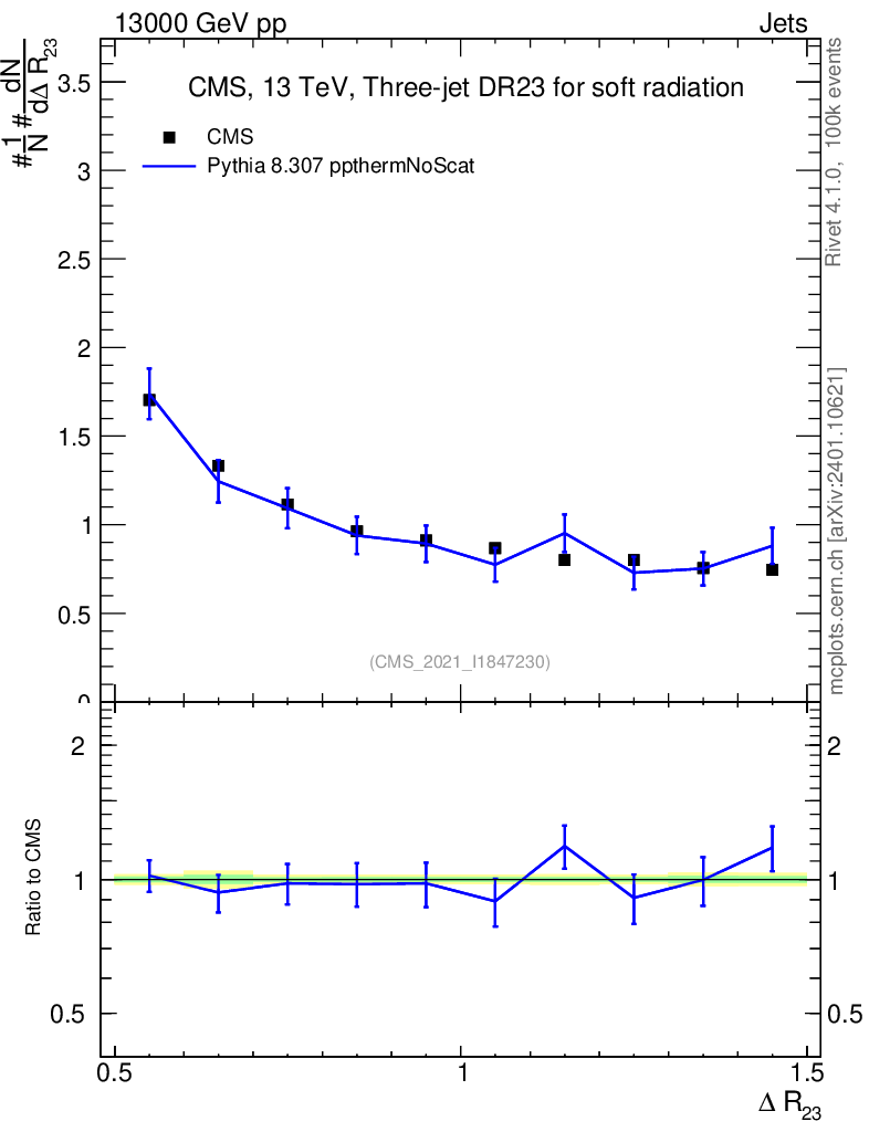 Lines: data, pythia8 8.307 ppthermNoScat |