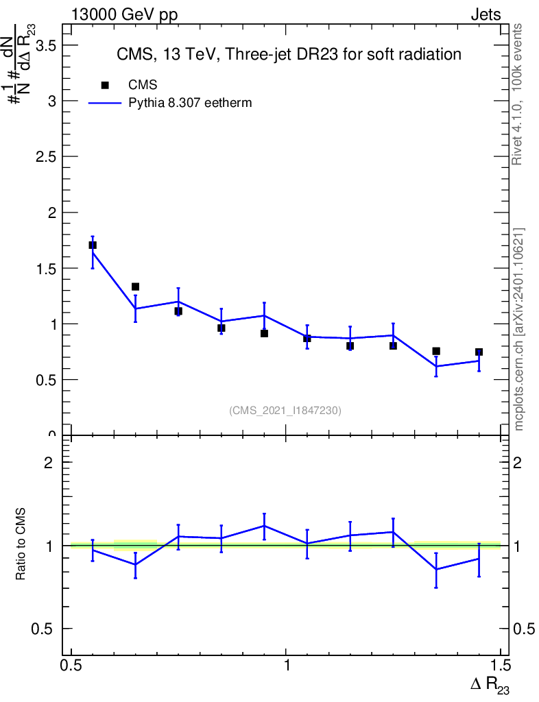 Lines: data, pythia8 8.307 eetherm |