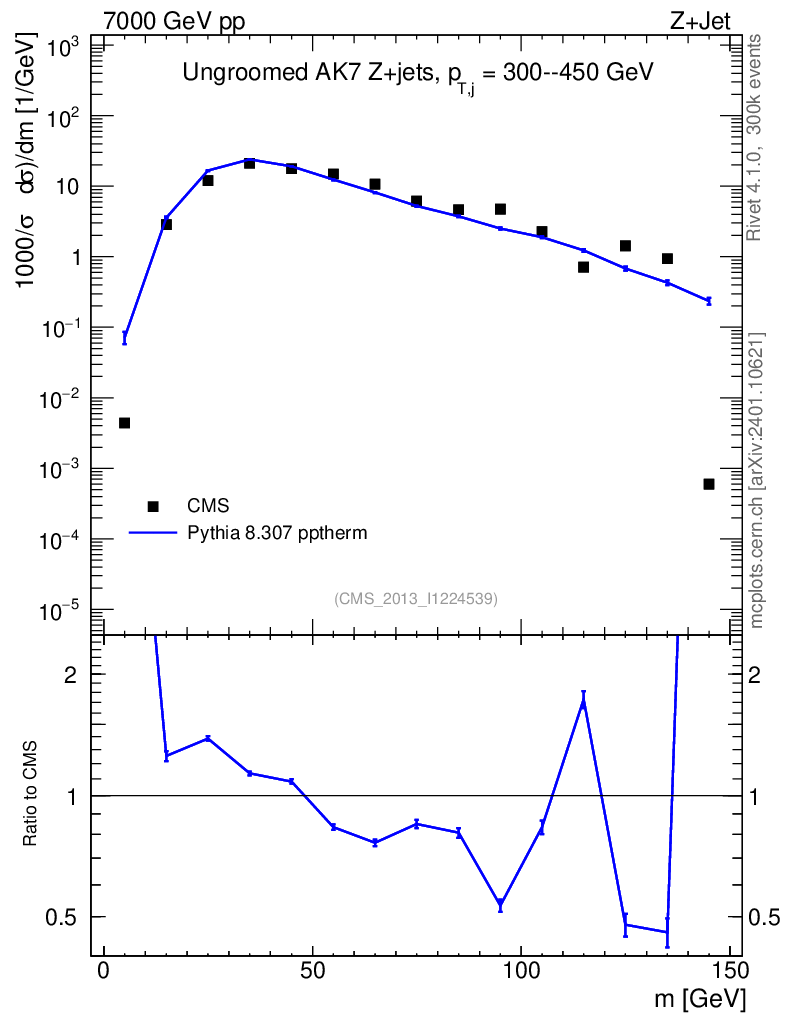 Lines: data, pythia8 8.307 pptherm | compare with other tunes