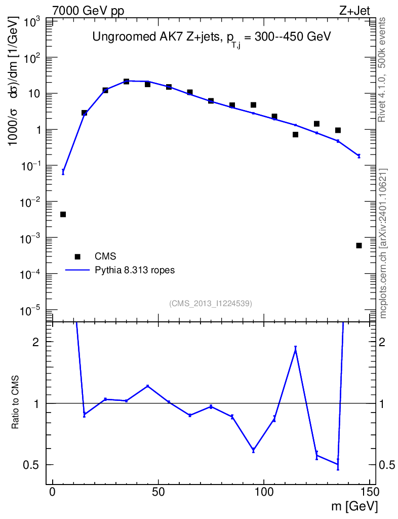 Lines: data, pythia8 8.313 ropes |