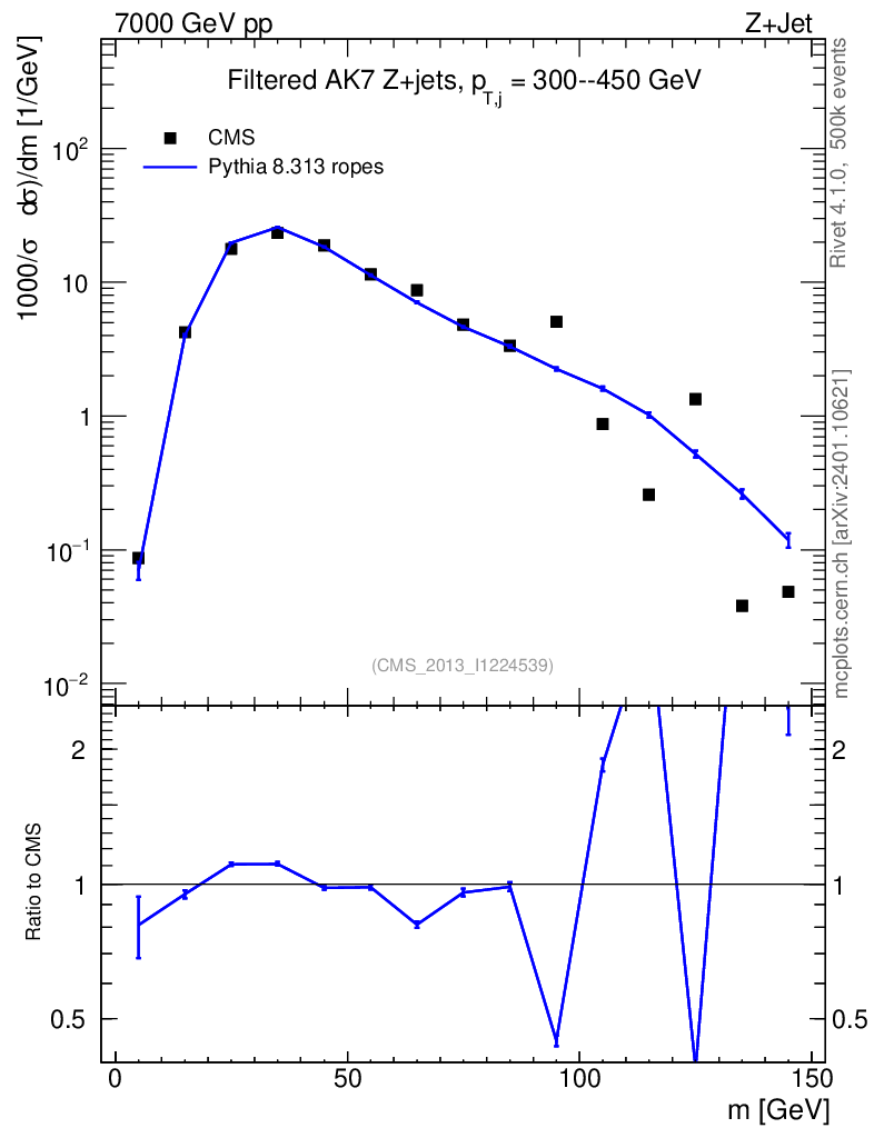 Lines: data, pythia8 8.313 ropes |