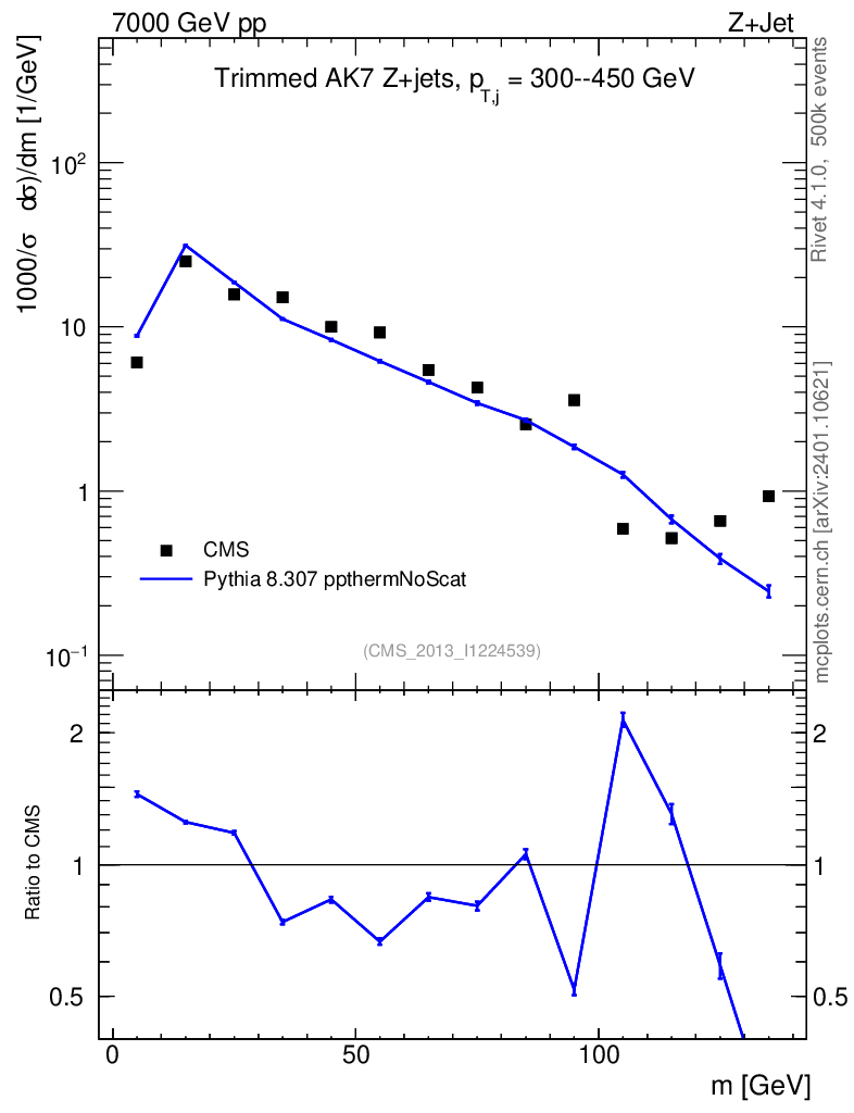 Lines: data, pythia8 8.307 ppthermNoScat |