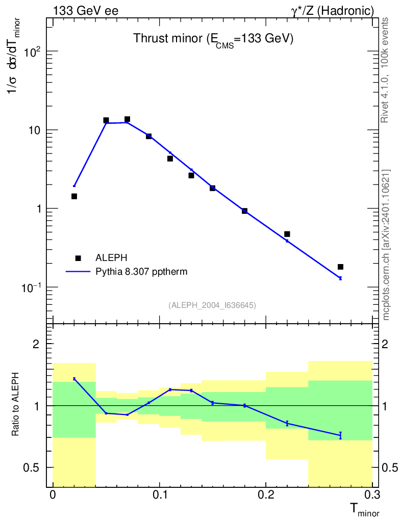 Lines: data, pythia8 8.307 pptherm |