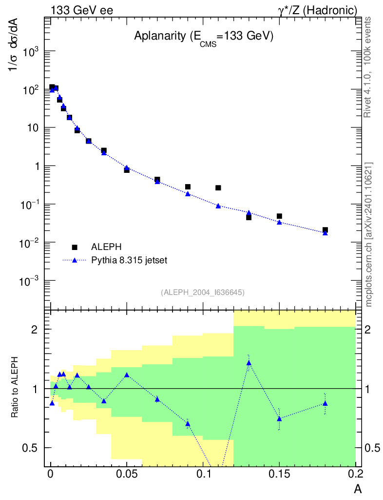 Lines: data, pythia8 8.315 jetset |