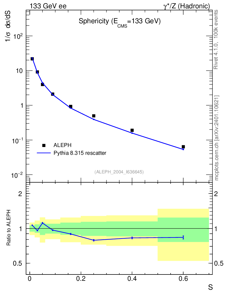 Lines: data, pythia8 8.315 rescatter |