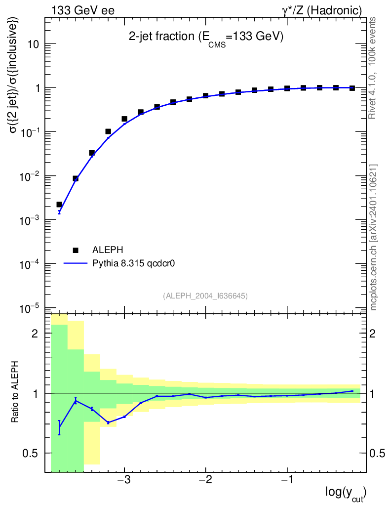 Lines: data, pythia8 8.315 qcdcr0 |