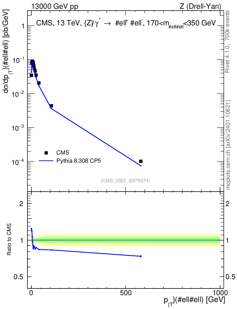 Lines: data, pythia8 8.308 CP5 |