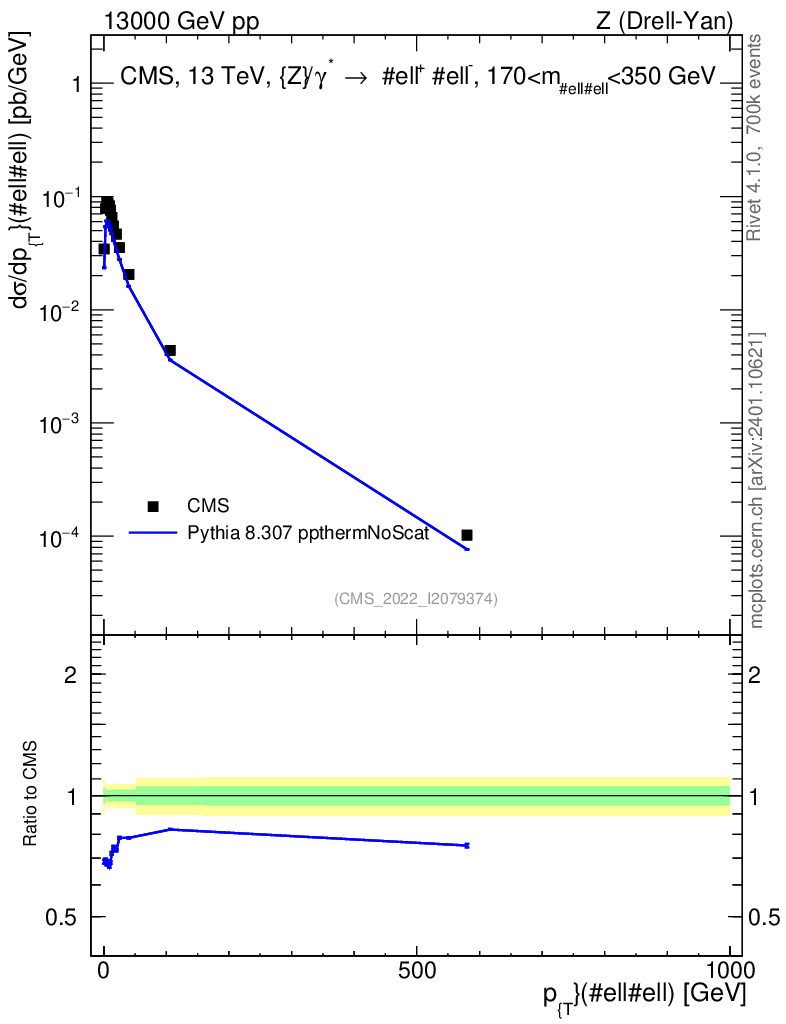 Lines: data, pythia8 8.307 ppthermNoScat |